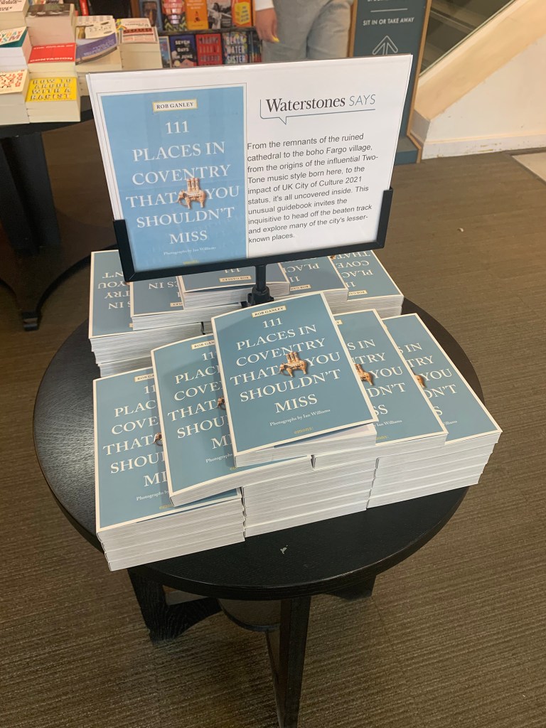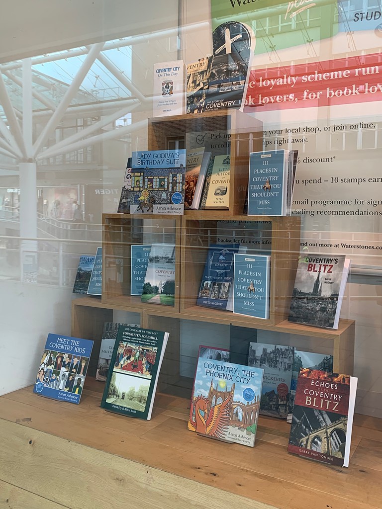 The book published in spring 2021 and costs £12.99 and you can order it online at Hive, Waterstones and Amazon. Or you can buy it in bookshops around Coventry, such as the main Waterstones branch on Smithford Way in the city centre, where at time of writing this blog it’s part of a wonderful window display and even has its own table near the front entrance. I enjoyed going along there, meeting some of the team and signing a bunch of copies.